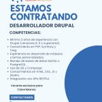Cargo: Desarrollador Drupal Experiencia: – Mínimo 3 años de experiencia en desarrollo web con Drupal 8, 9 o superior. – Conocimiento en PHP y Symfony, como base del core de Drupal. – Experiencia en desarrollo de módulos personalizados, temas y views. – Manejo de bases de datos relacionales como MySQL o PostgreSQL. – Conocimiento en…